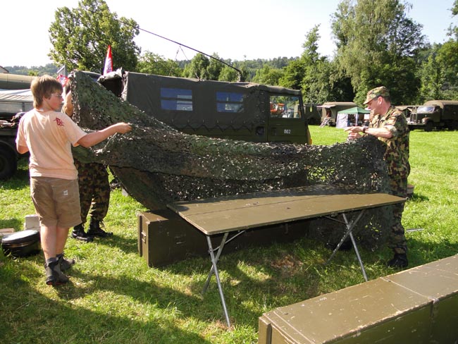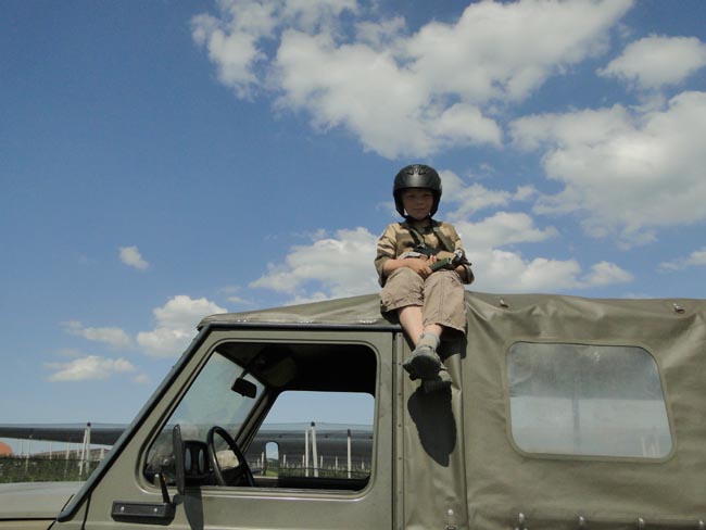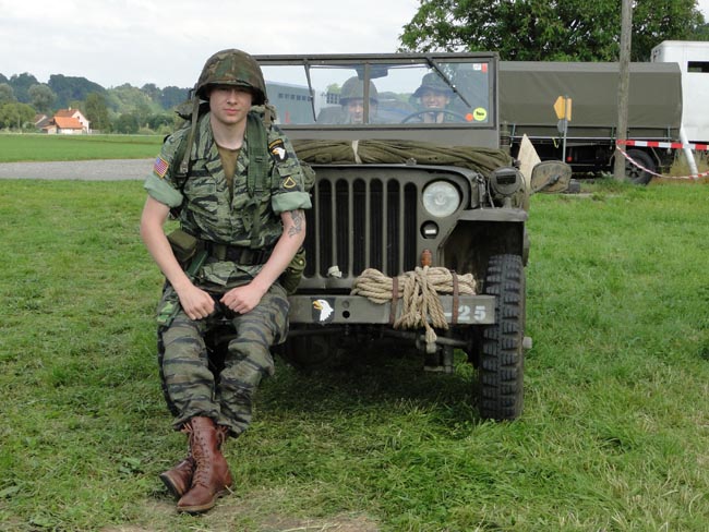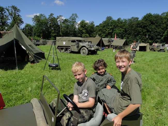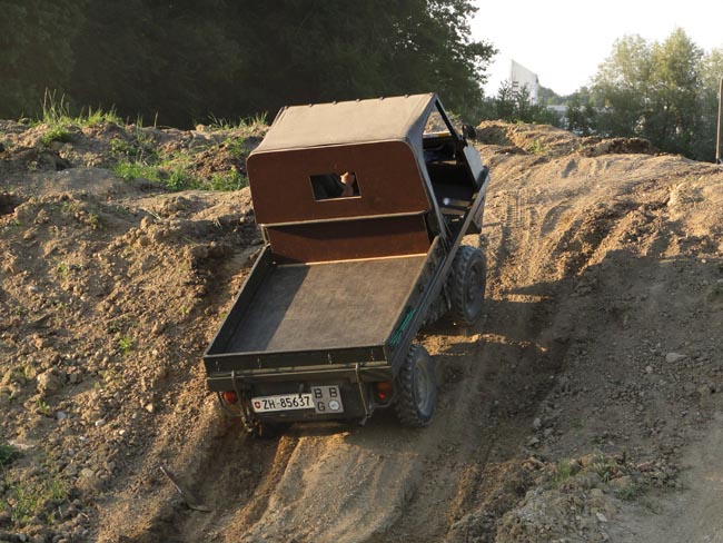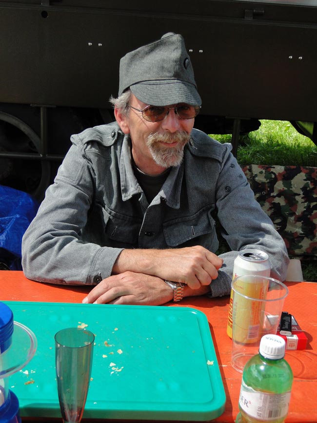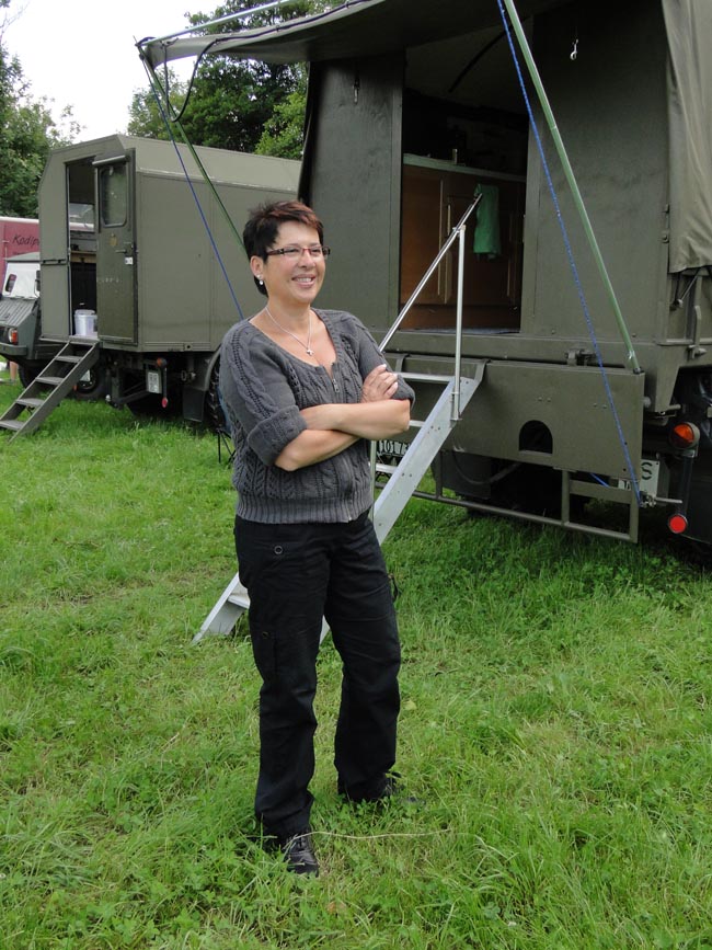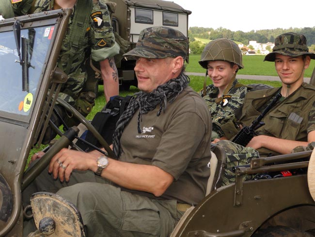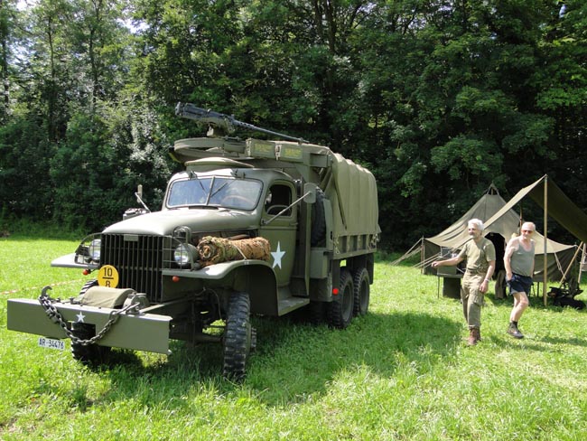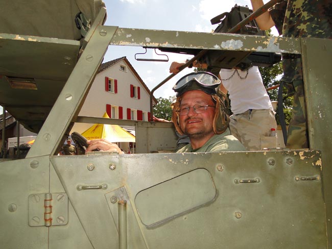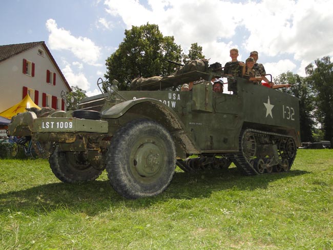 | 53 Daniel Keller mit seinem Fahrzeug. | 54 Dani in seinem Halftrack (Halbkette). Dies ist ein International M5 Halftrack. |