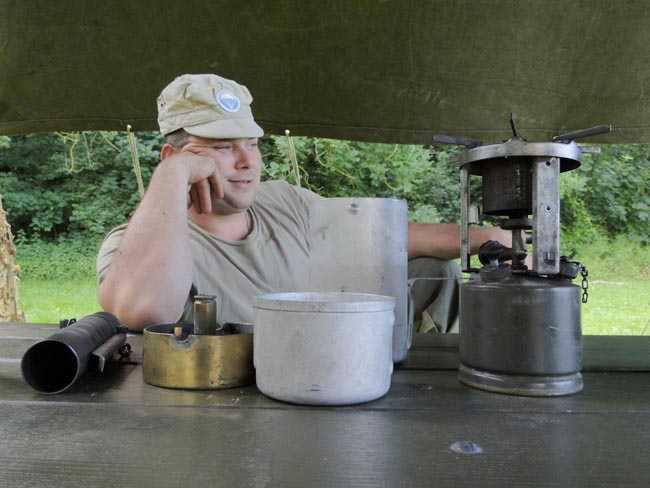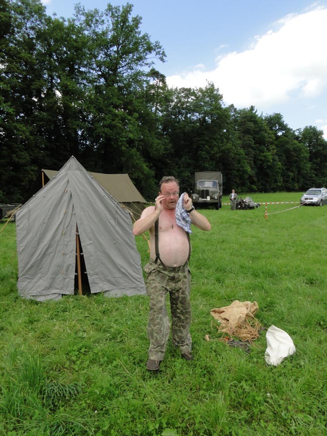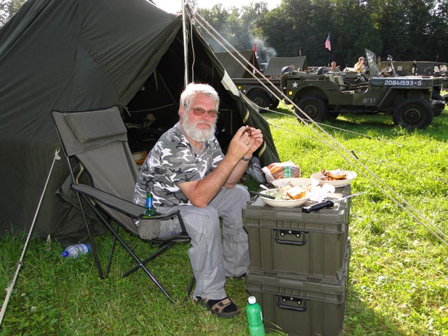 | 5 Beim Zelt aufstellen, haben sich die Wolken verzogen und es wurde richtig warm. | 6 Nach getaner Arbeit, habe ich mich dann auch gestärkt. |