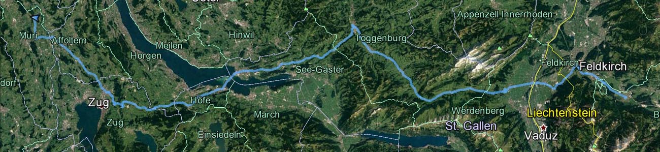 uns zur Heimfahrt aufgemacht. Route: Nenzing - Feldkirch - Nendeln - Gams - Wattwil - Jona - Schindelleg - Menzingen - Baar - Rottenschwil. |