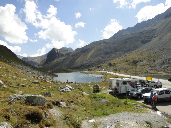 | Mal kurz die Beine vertreten. | Blick Parkplatz Passhöhe |