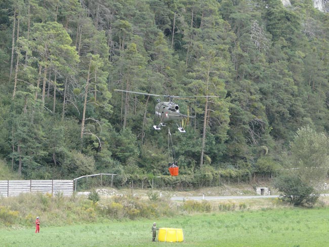| Wasser aufnehmen mit dem Helikopter |