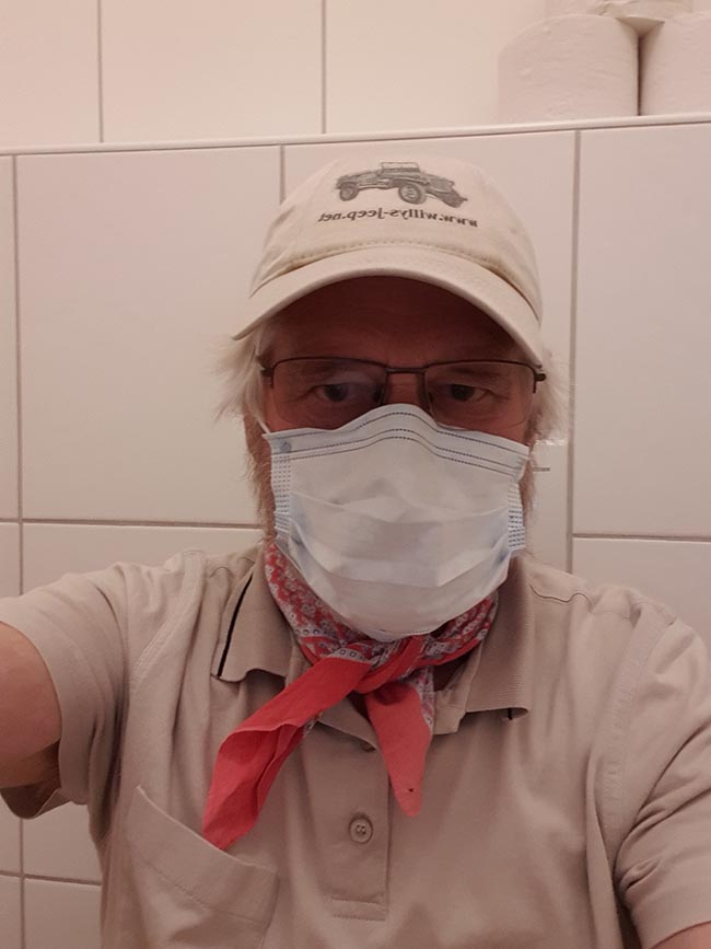 | Warten aufs Mittagessen | Auch auf dem WC ist Maskenpflicht. |