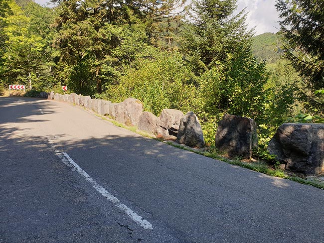 | Hinter den Steinen geht's es tief in die Schluckt runter |