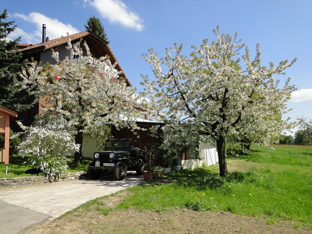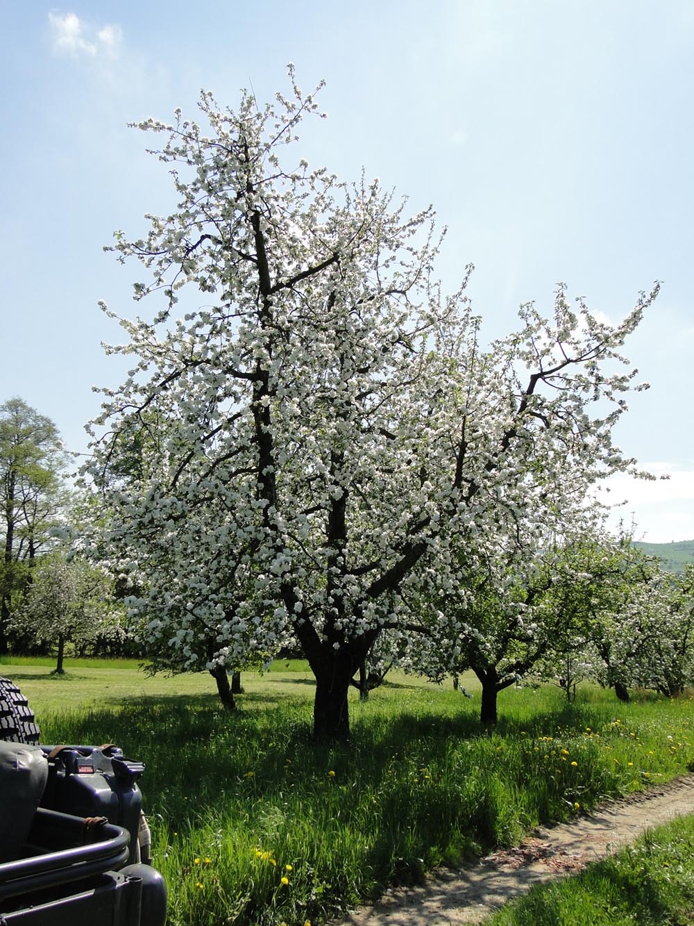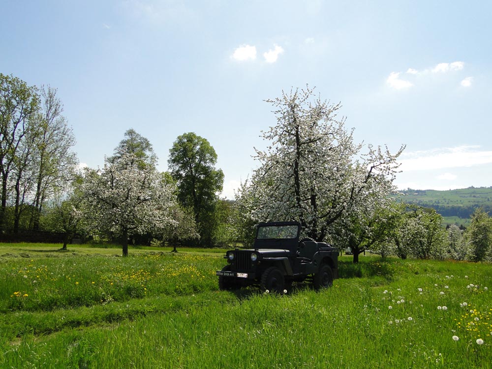 Die blühenden Bäume und der Jeep war mein erstes Motiv an