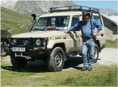 | Aussergewöhnliche Fahrzeuge werden begutachtet. | So lernten wir auch den Besitzer kennen. |