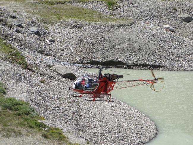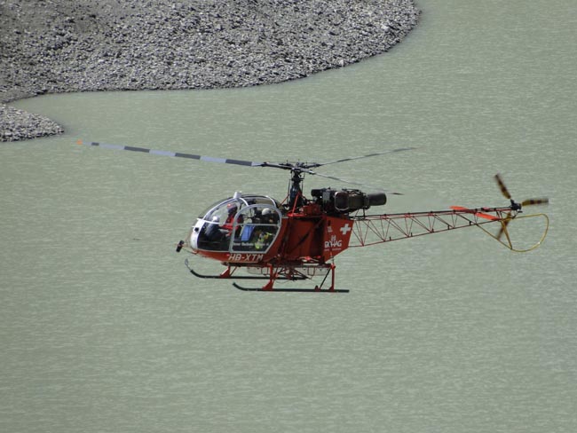 | Aus Zeitgründen wird heute das Material mit dem Heli abgeholt. | |