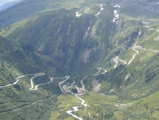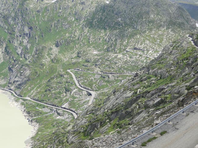 | Ein Blick auf die Strasse zum Grimsel von der Strasse Oberaar -Grimsel | |