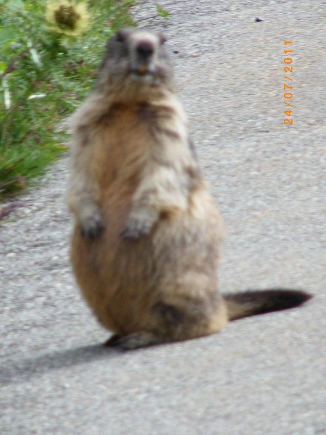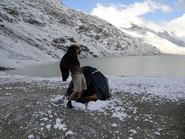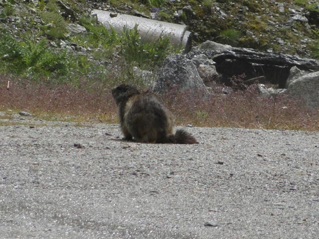 | Kuna beim warten bis zur Freigabe der Strasse nach Oberaar | |