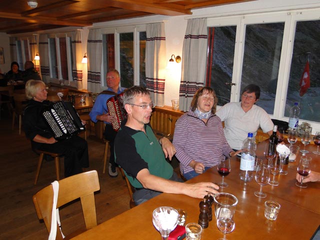 | Beim gemütlichen Nachtessen | Thomas bei der Arbeit |