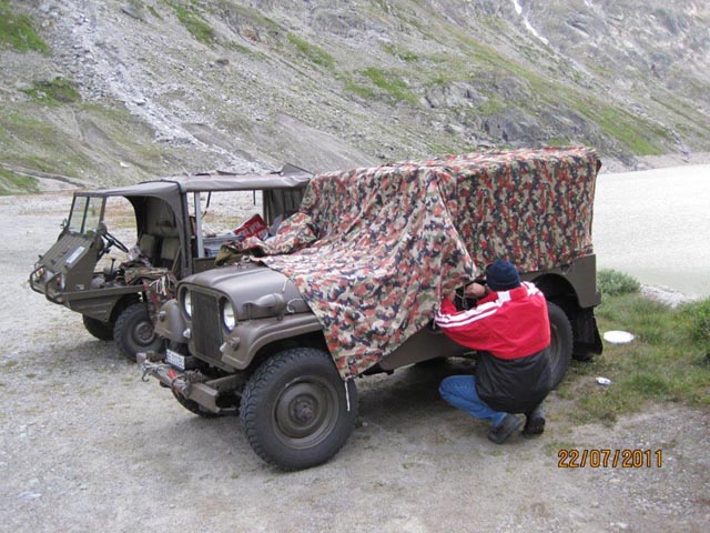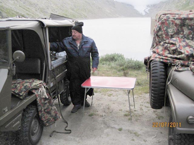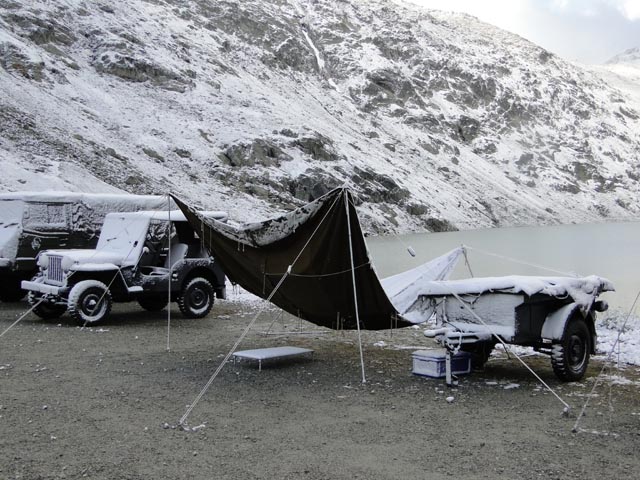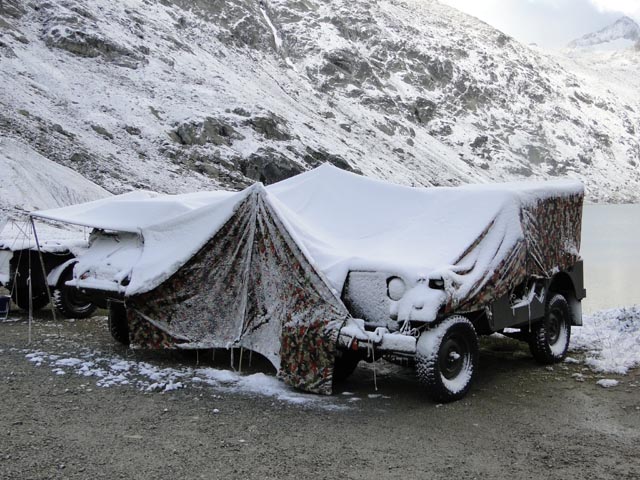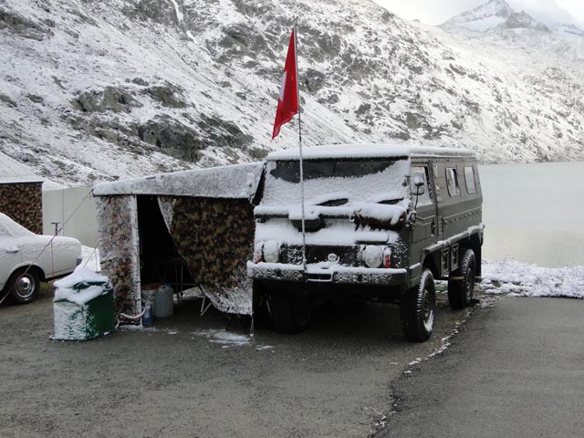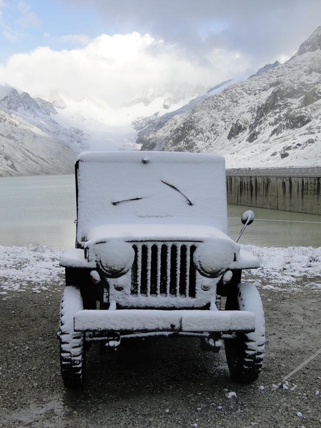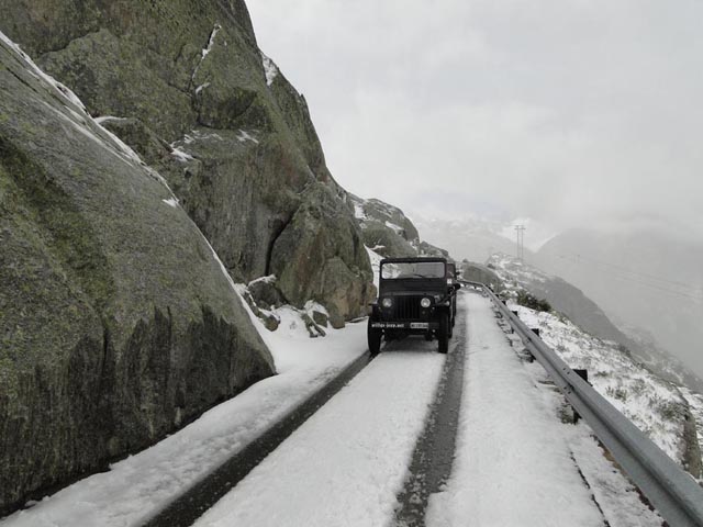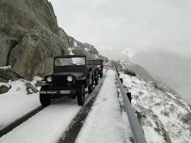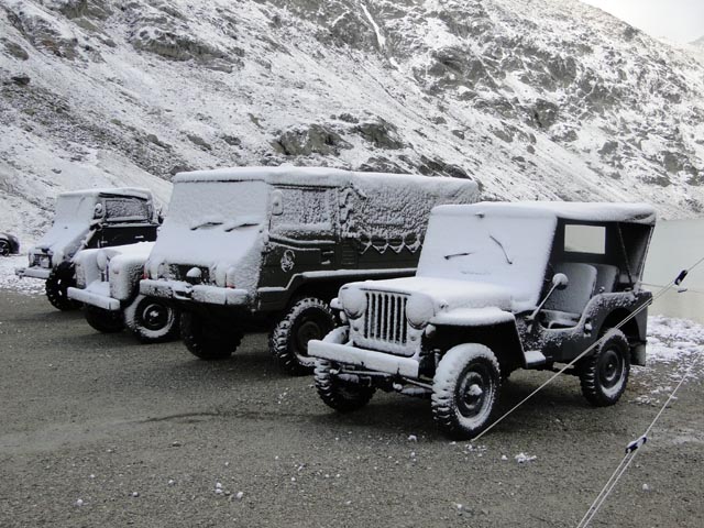 | Agnes Käeslädeli kurz vor der Passhöhe. Ein Besuch lohnt sich immer. | Wie man sehen kann, bestes Jeep Wetter | |