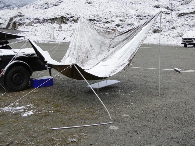 | Samstag 9.00 Start. In den ganzen 10 Jahren habe ich das Dach im voraus noch nie montiert. | Da oben muss es Regnen. |
