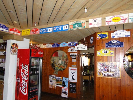 | Die Innenräume des Restaurants sind voll mit Andenken | von früheren Veranstaltungen im Jura und sonst wo. |