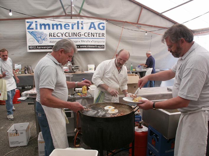 | Bild 148 Da der Ansturm auf die Käseschnitten plötzlich sehr gross wurde, nahm ich die Hilfe von Margrit Wegmüller und Anita .......... gerne an. | |