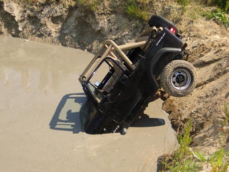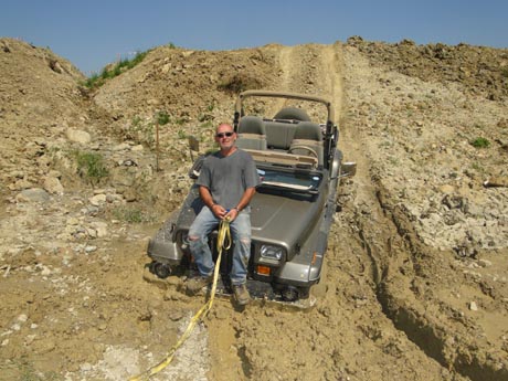 Ich sass im Wiesel als er diesen Hügel von unten nach oben gefahren ist. Die Steigung und das Tempo waren an der Grenze. |