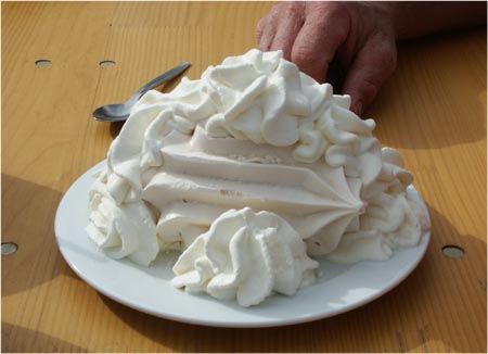 | Warten auf die Kässchnitten und Getränke | Das Dessert wurde einem Jeepfahrer gerecht. |