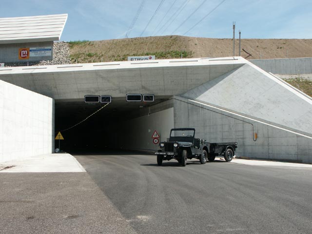 | Kurz vor der Einfahrt zum neuen Tunnel, winkte mich ein Polizist