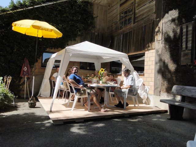 | Beim Flüelerhof feierte die Familie von Toni Bühler die Einweihung ihres Sitzplatzes welcher vor 30 Minuten fertig gestellt wurde. Als wir nach dem Weg nach Eriswil fragten, wurde uns Kurve für Kurve erklärt. | Besten dank für die genaue Beschreibung, wir