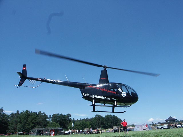 | 51. Auf zum Helikopterflug: Die Idee, das Treffen von oben zu fotografieren. Leider hatte der Pilot nicht den gleichen Gedanken, oder war er durch Verena, die beim Flug neben ihm sass, zu stark abgelenkt? |