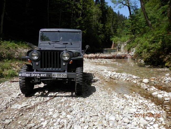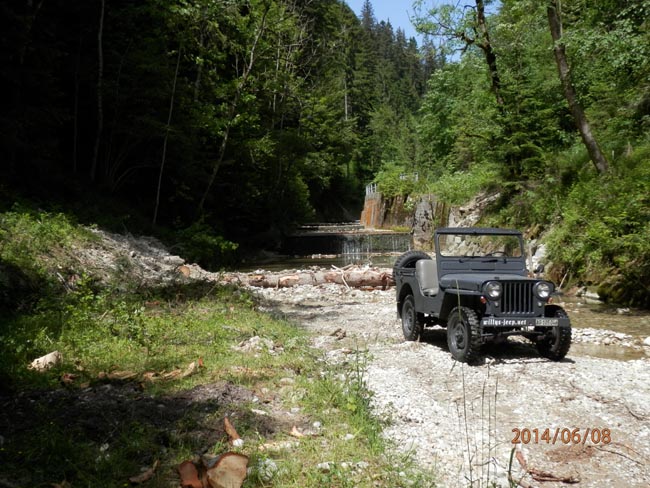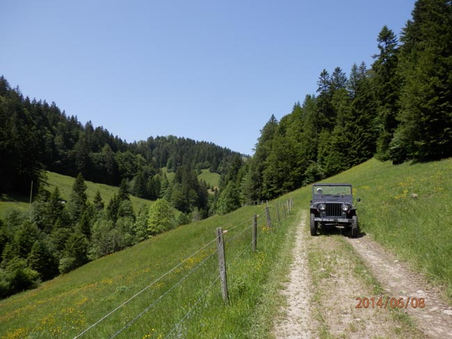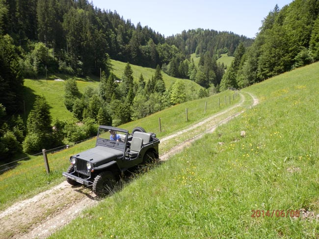 | Da der Willys ja ein Geländefahrzeug ist, musste er doch wieder einmal | auf eine Naturstrasse. |