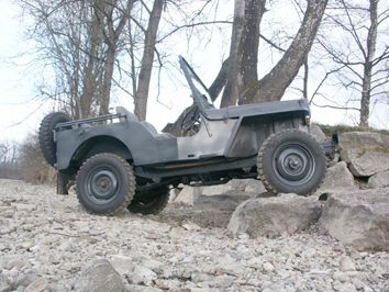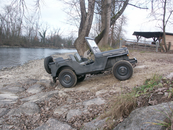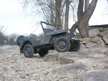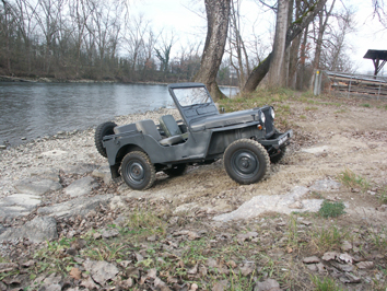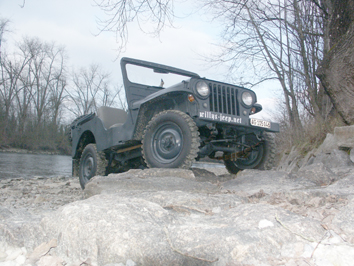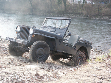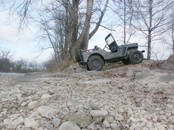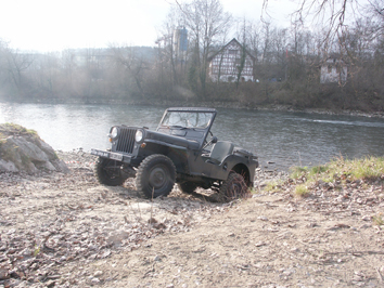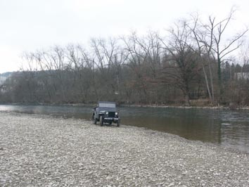 | Im Hintergrund ein Zeuge des letzten Hochwassers | Wie Du sehen kannst, hat mein Jeep das klettern noch nicht verlernt. |