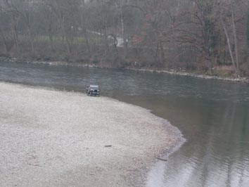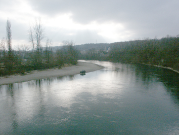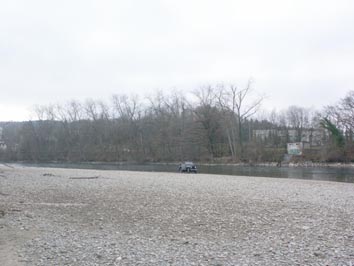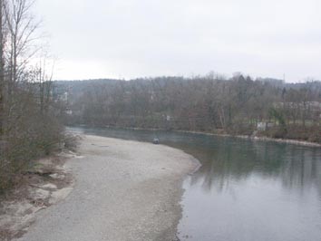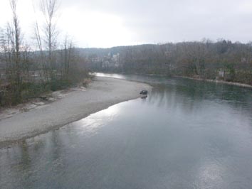 | Die Kiesbank beträgt zweidrittel der Reussbreite. | |