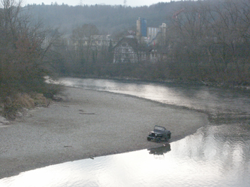 Bei so niedrigem Wasserstand musst du einfach mal mit dem Jeep runter.