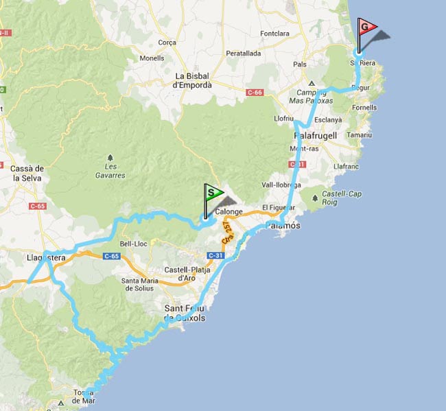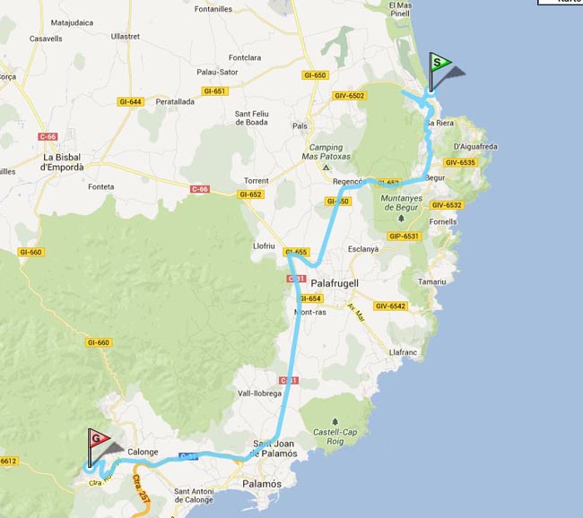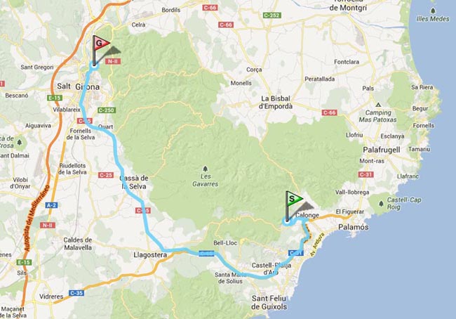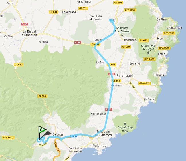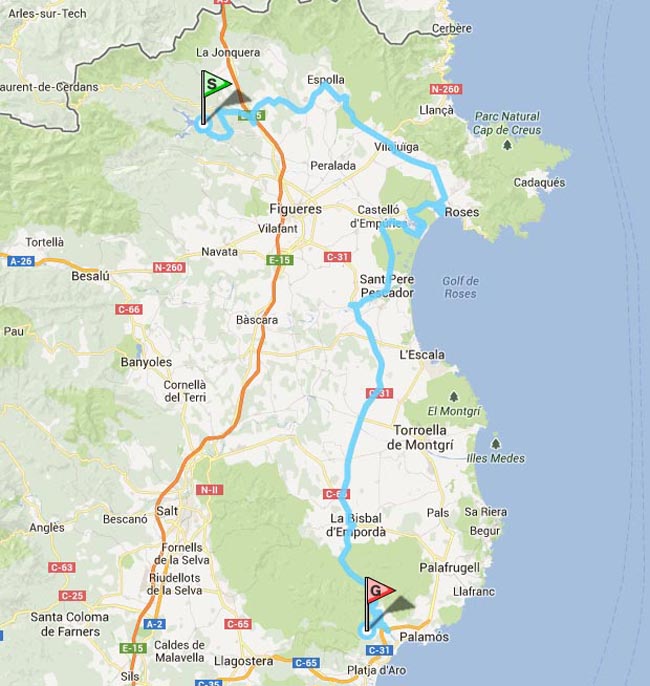 Die Route zum Stausee Pantà de Boadella. Strecke cirka 110 Km |