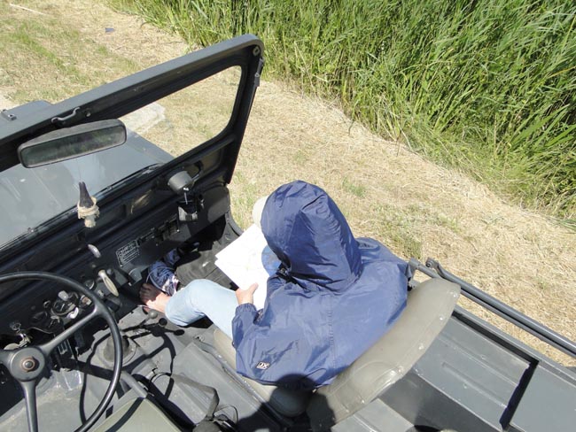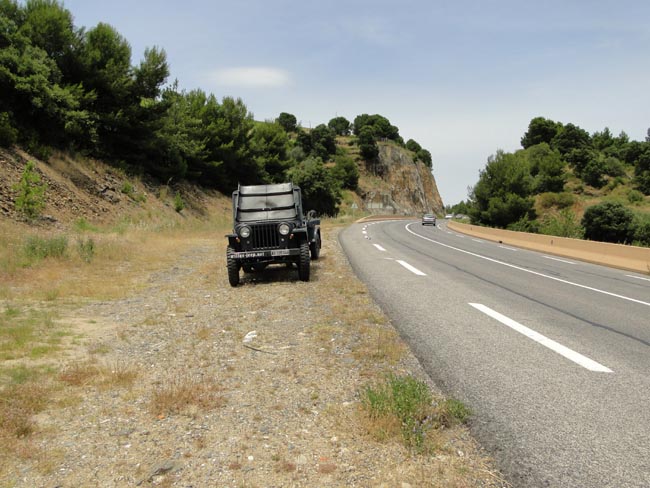 | Donnerstag 27. Juni Da wir sehr viel Küstenstrassen gefahren sind, hat unser Willys ein wenig zu heiss bekommen. Kurze Pause für alle. | |