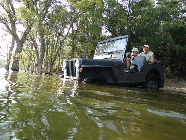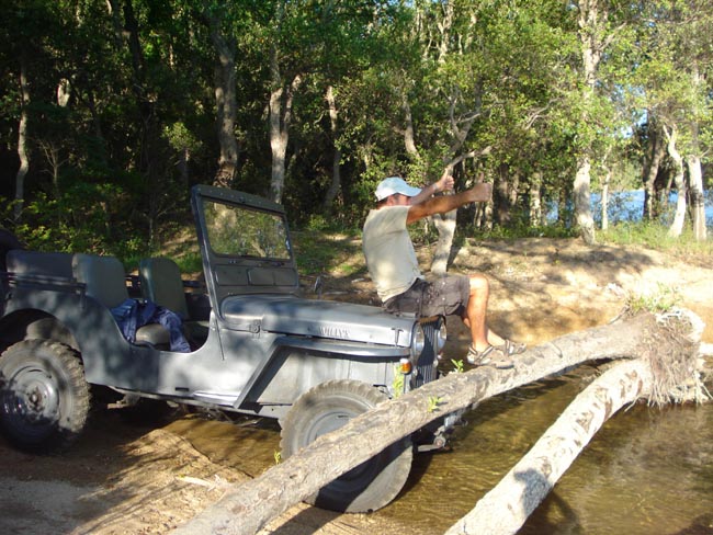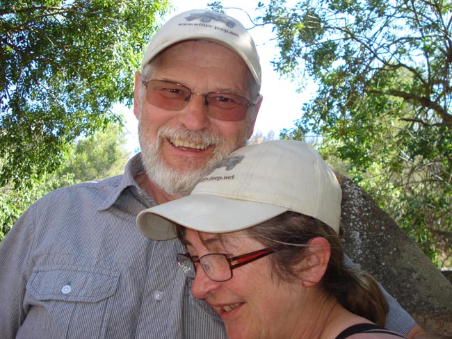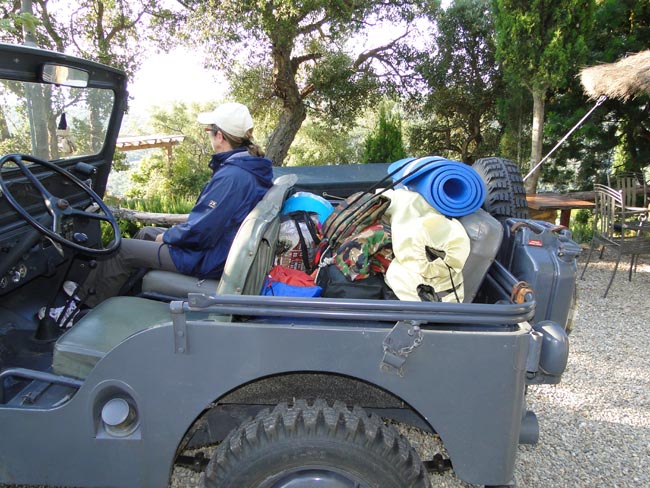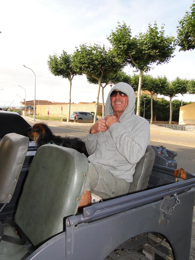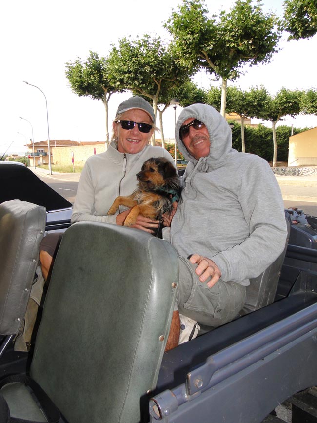 | Köbel der das offene Jeepfahren noch nicht gewohnt war, meinte da kann es doch kalt werden bei 34 Grad im schatten. | Margit mit Gigi und Köbel . |