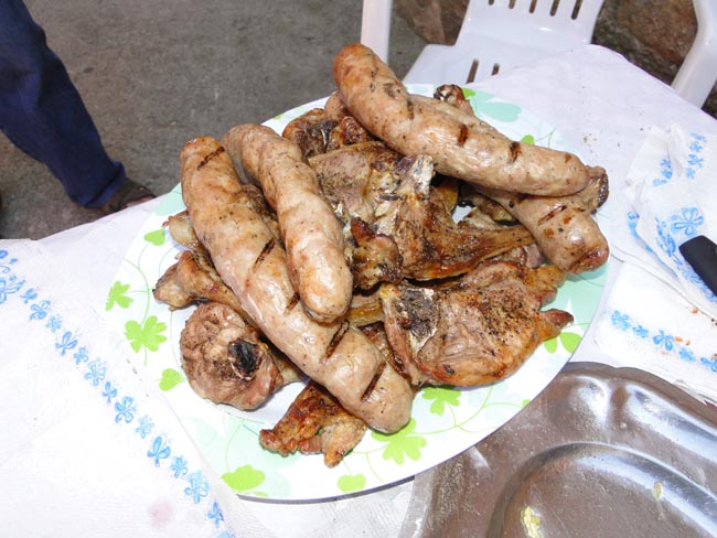 | Durch enge Gassen zum Mittagessen. | Warten bis wir das Schaffleisch aussuchen können. |