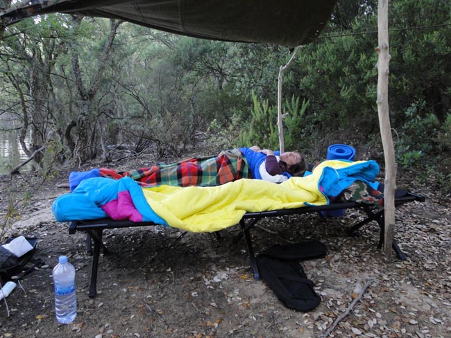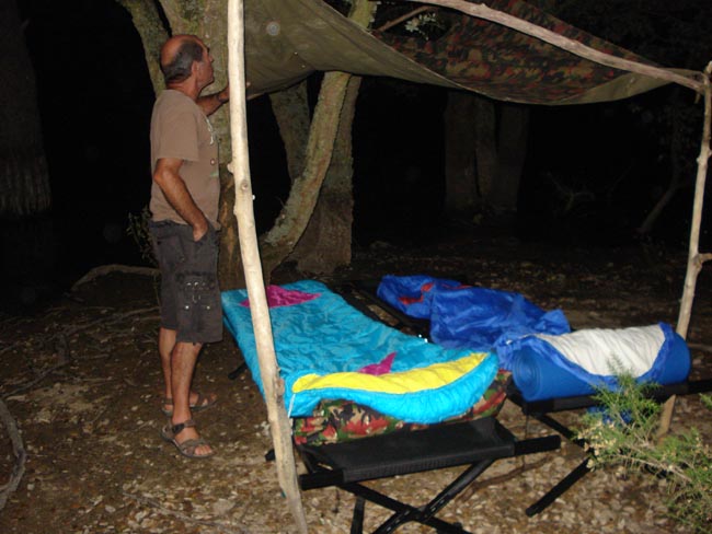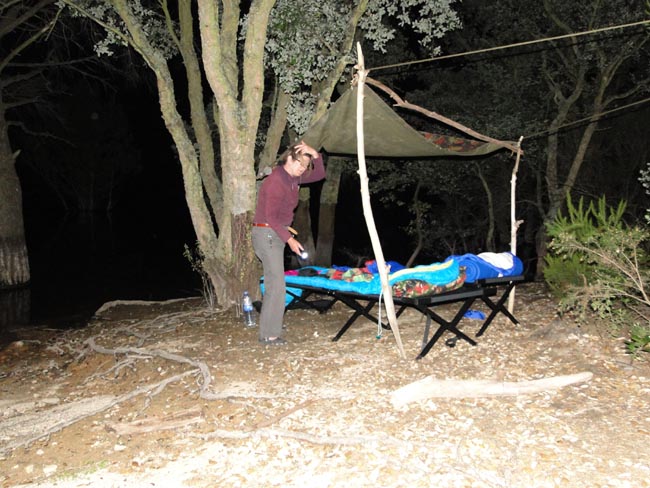 | Unser Nachtlager in freier Natur. | Wo ist mein Pyjama. |