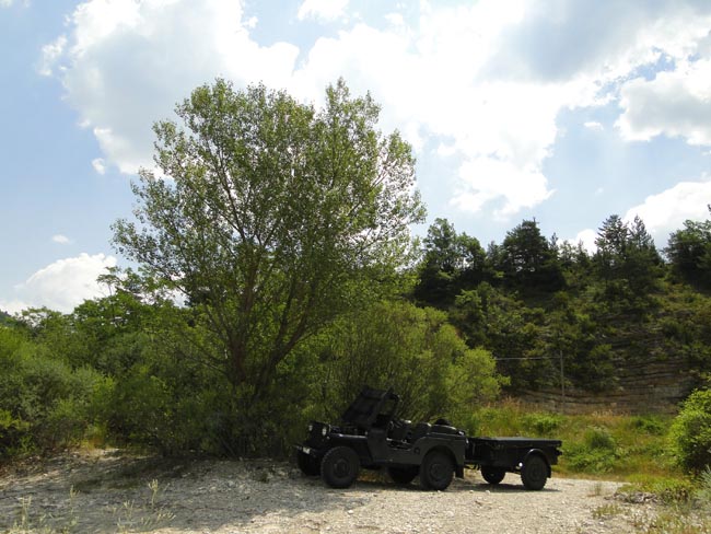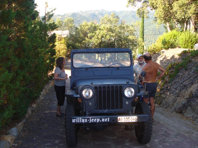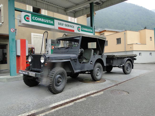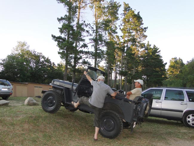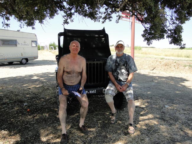 Der Herr links kam aus dem Wohnwagen und sprach mich auf Italienisch an. Leider kann ich kein Italienisch. Trotzdem habe ich verstanden, dass er ein MB Jeep habe und zeigte mir Fotos auf seinem Smartfon. Er hat mir versprochen, Fotos zu senden für meine HP. Leider habe ich bis heute nichts erhalten. |