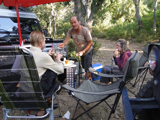 | Ein gutes Frühstück darf auch in der Wildnis nicht fehlen. | Margit und Köbel sind diese Art von Campieren schon gewöhnt. |