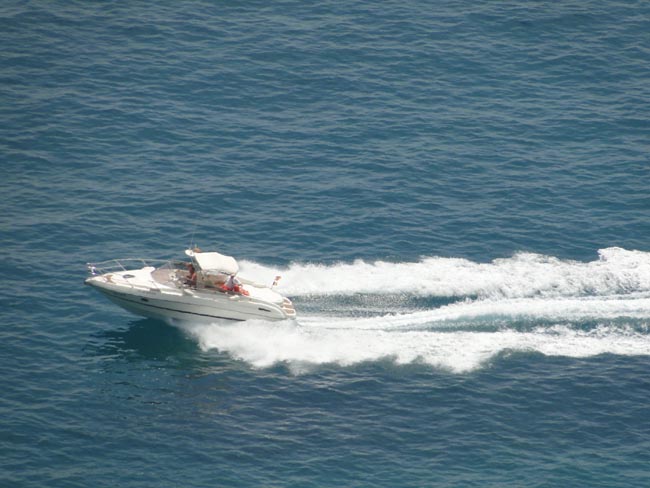 Rückblick nach Port-Vendres Grenze Überfahrt von Frankreich nach Spanien um 14.19 Uhr |