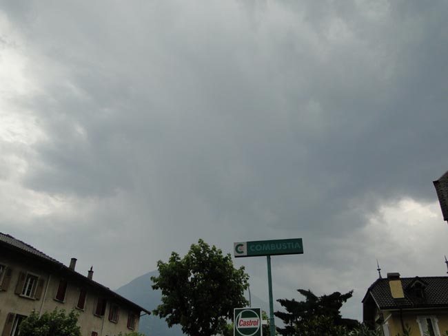 | In Trient haben wir das Dach montiert. | In Martigny hat uns das Unwetter voll erwischt. Hagel |