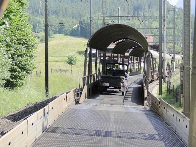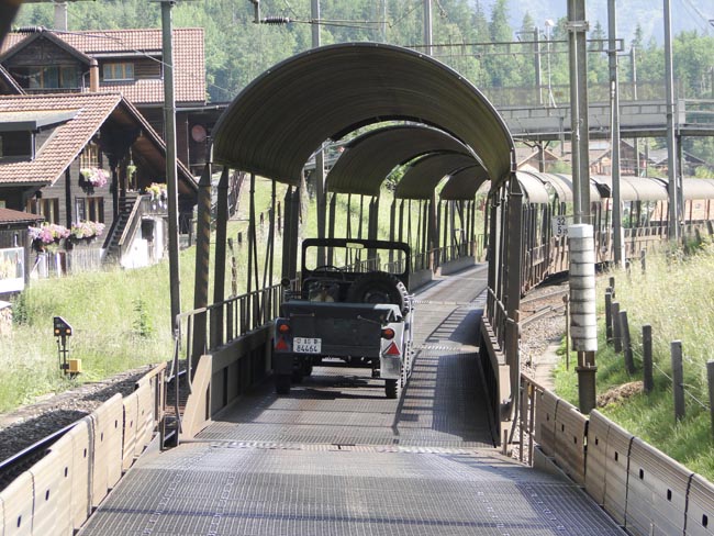 | Dienstag 9. Juli Autoverlad Goppenstein- Kandersteg | Platz hatte mein Willys mehr als genug. |