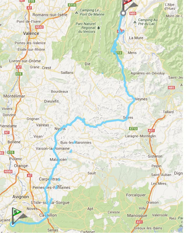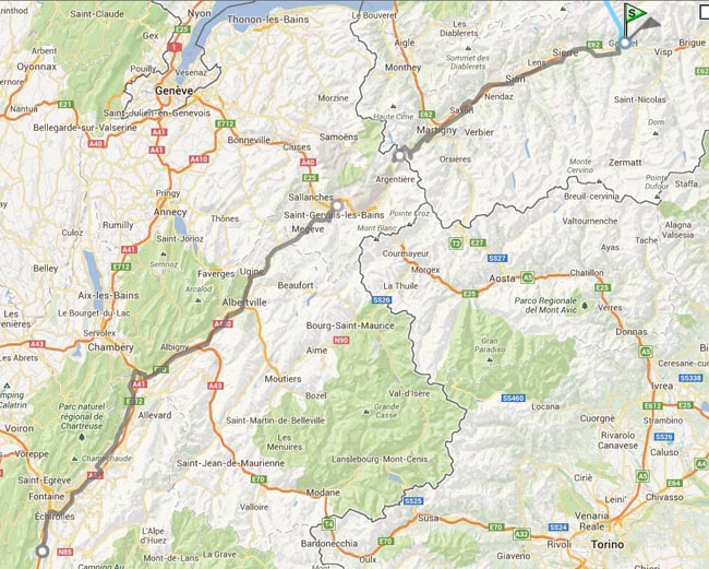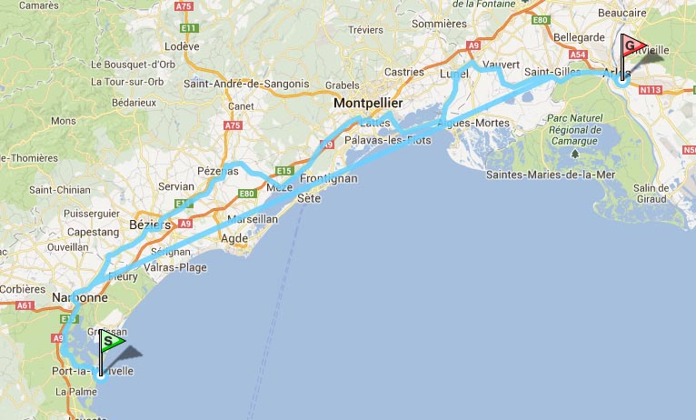 | 2.ReiseTag. Ruote: Aix-les- Bains / Cambery / Saint-Christophe / Voiron / Tullins / Romans-sur-Isére / Valence / Montélimar / Bagnols-sur-Céze- Nimes-Lunel- La-Grande Motte. Auch hier nicht die ganze GPS Aufzeichnung |