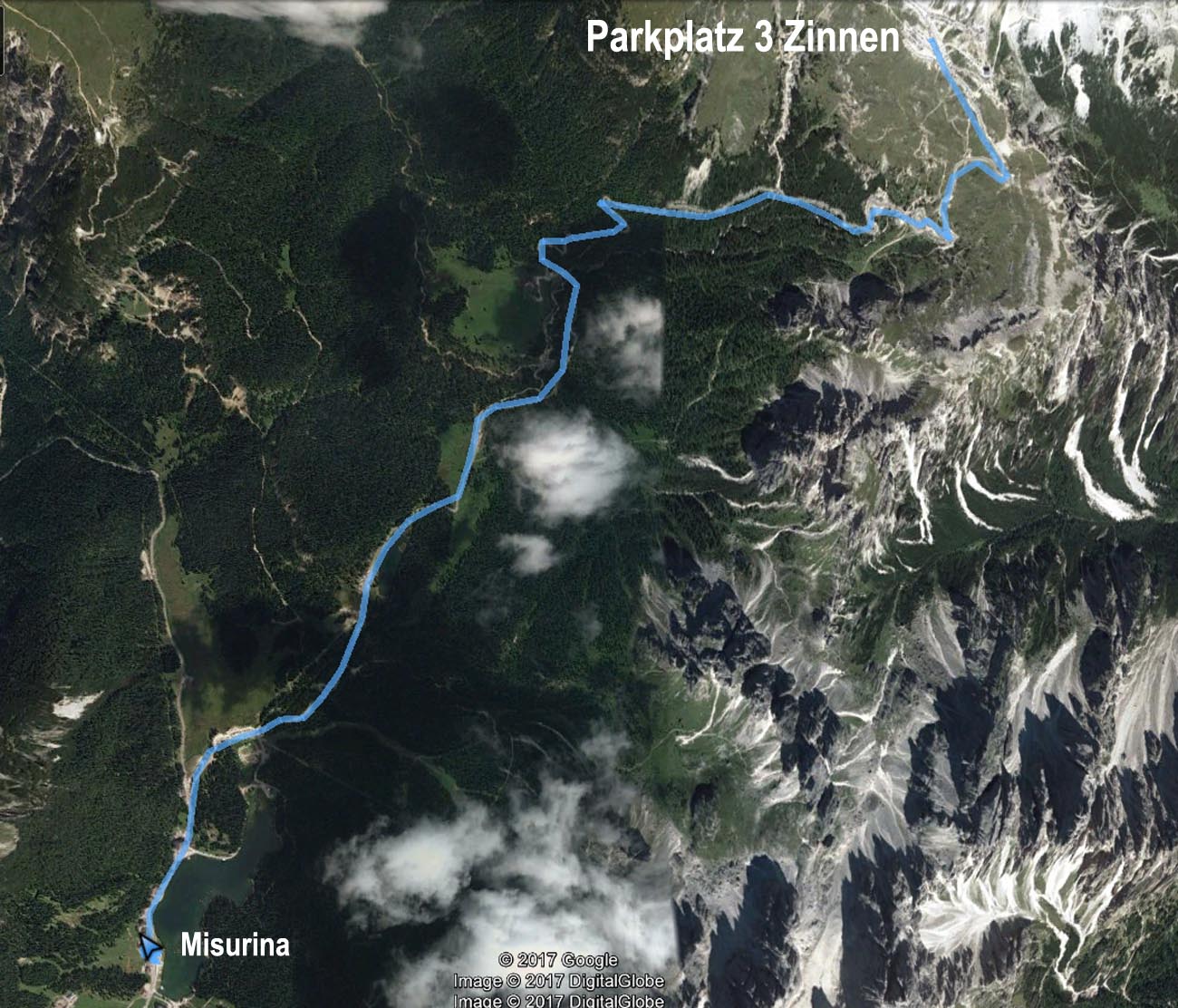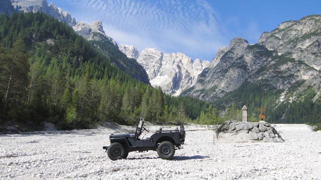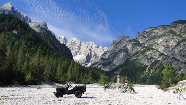 | Auf der Fahrt zu den Drei Zinnen im Bachbeet. | |