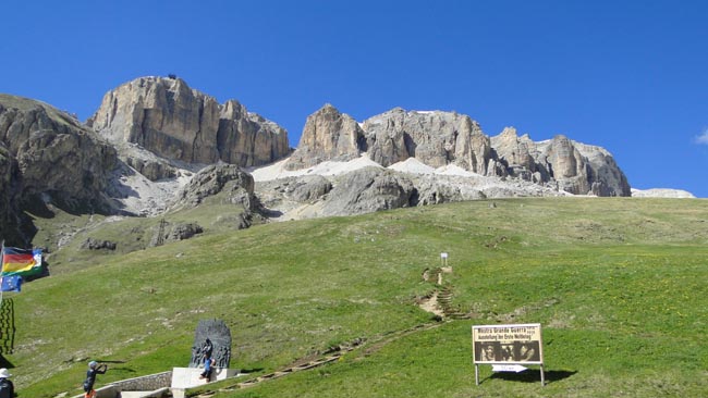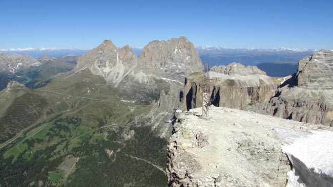 Mit der Seilbahn sind wir vom Pordoijoch auf den Sass Pordoi gefahren.