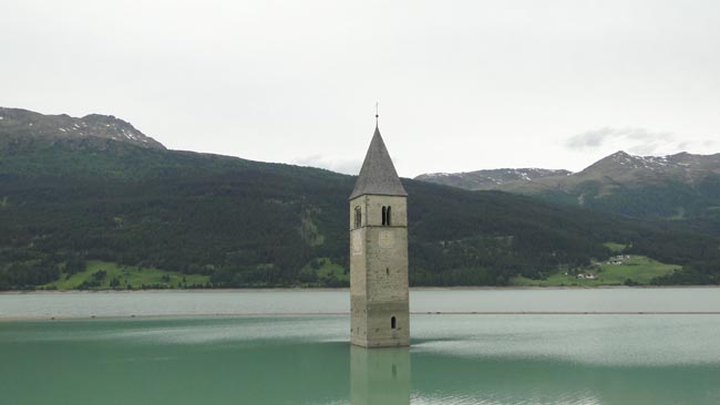 | Kirchturm im Reschensee | Unser Hotel in Terlano |