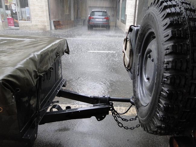 | Nach diesem Wetter, habe ich mich entschlossen, die Abdeckung des Getriebes nun doch zu ändern. Bei diese Fahrt kam das Wasser vom Getriebe her in den Jeep | |