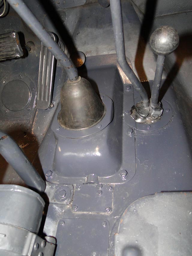 | Da der Besitzer eine Rückfahrlampe wollte, musste ein Schalter oberhalb des Getriebes eingebaut werden. Um Platz für den Schalter zu erhalten, wurde diese Variante gewählt. Nachteil! Das Wasser kam von unten in den Fussraum des Jeeps. | |